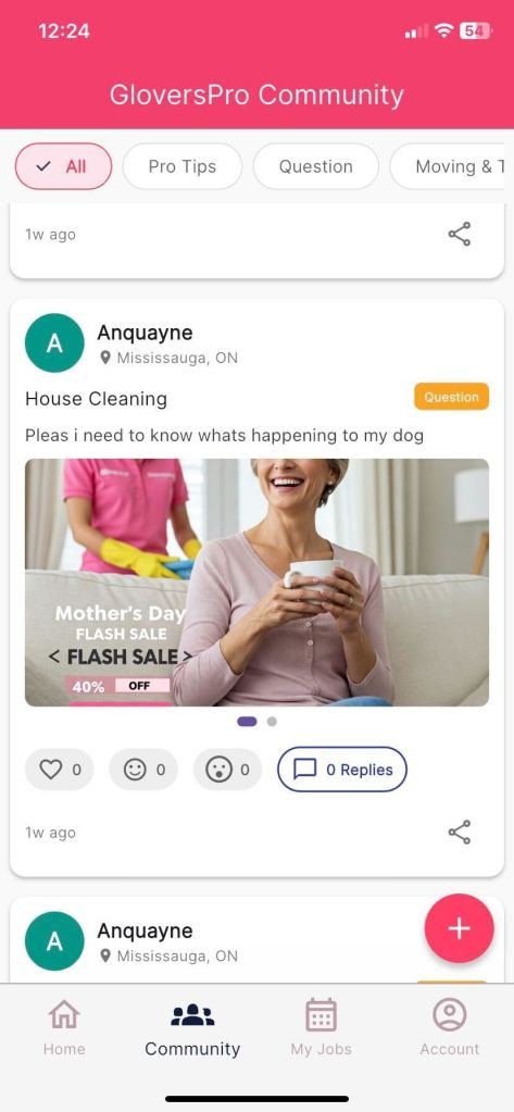 - Start exploring! Filter posts by “All,” “Pro Tips,” “Questions,” or specific service categories like “Plumbing,” “Electrical,” or “House Cleaning.”